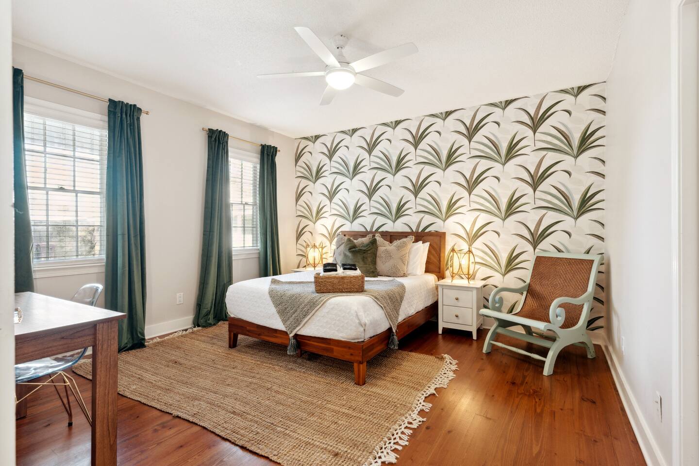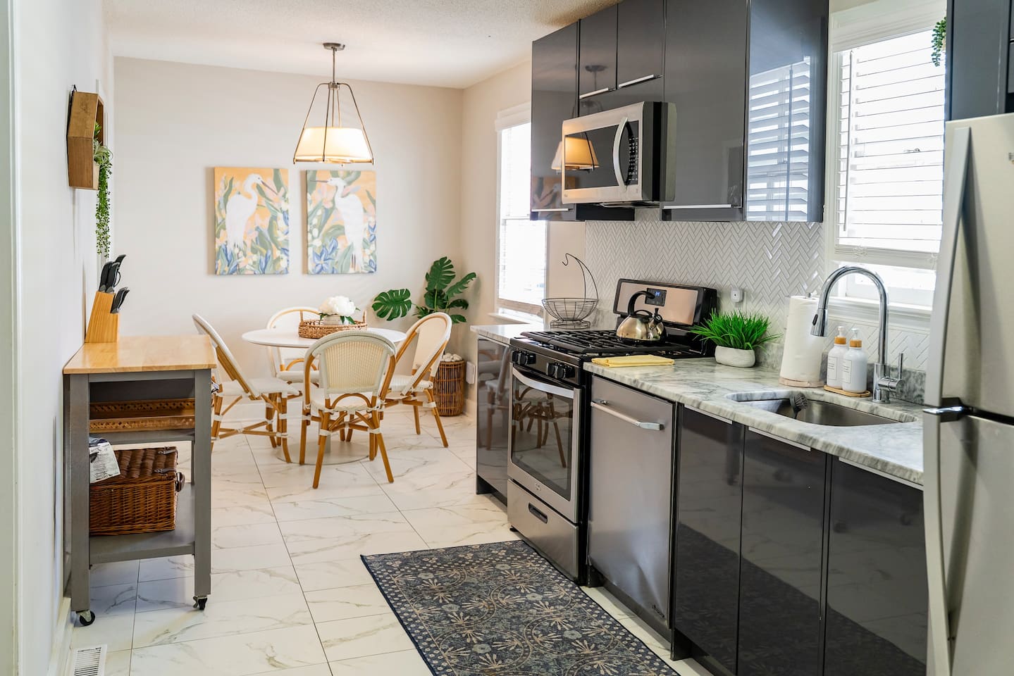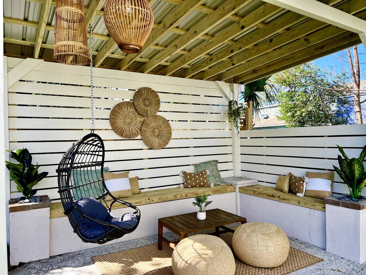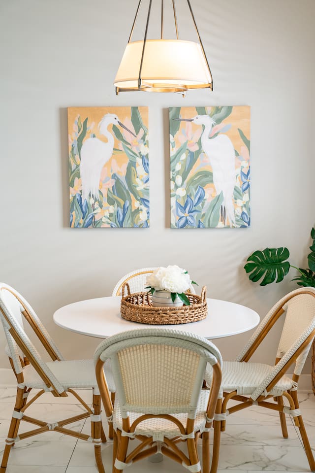 Step into your private first-floor unit, where the living room welcomes you with the vibrant colors of Charleston. Woven window shades filter in soft natural light while keeping things cozy and private. Feel like cooking? The eat-in kitchen blends modern flair with comfort. With sleek grey cabinets, a chic white herringbone backsplash, and stainless-steel appliances, it’s the perfect spot to whip up a meal. The Charles Suite offers two bedrooms, each with its own stunning wallpaper. The first bedroom features a plush queen-size bed, a closet, dresser, and desk for any work you need to tackle. Bedside lamps make late-night reading a breeze. The second bedroom boasts a queen bed with a luxurious TempurPedic mattress, a dresser, a closet, and wall sconces. The bathroom is complete with a stand-up rain shower. Just outside, beyond the neighboring duplex (we own both!), you’ll find a shared backyard that’s pure bliss. Relax under the custom pergola with built-in benches, sway in the swinging chair, kick back in Adirondack chairs, or play a round of giant JENGA. Fire up the grill and soak up Charleston’s gorgeous weather. The Charles Suite is packed with thoughtful amenities: high-speed Wi-Fi, air conditioning, heating, and free parking for one car. Families will love the pack + play and highchair, kids’ toys and books, and infant bathtub. Plus, we’ve got beach towels ready for your coastal adventures. Nestled in the heart of the city, you’re steps away from trendy cocktail bars, delicious restaurants, and charming boutique shops. Craving the beach? You are a 20 minute drive from Folly, Sullivan's and IOP. Whether you’re here to explore the city or the beaches, The Charles Suite is your ideal Charleston home base. City of Charleston Certificate of Operation: OP2023-04269