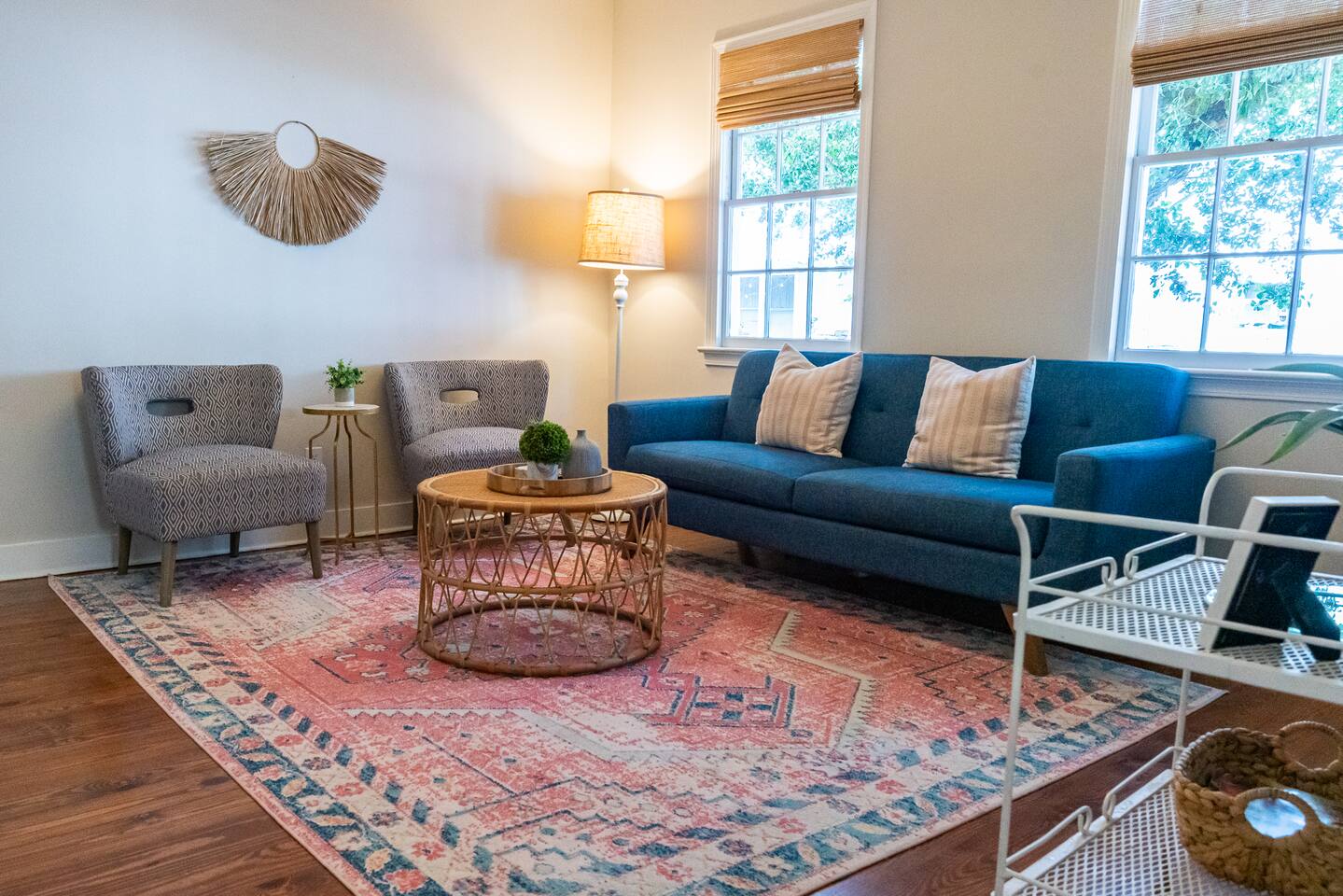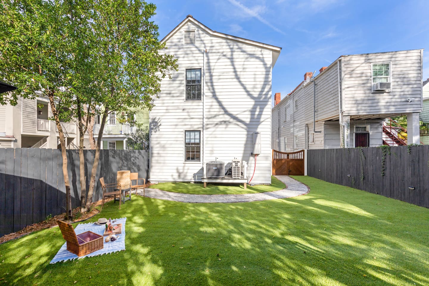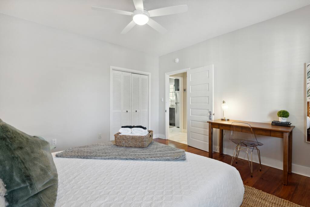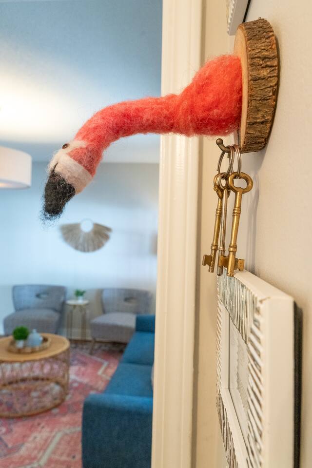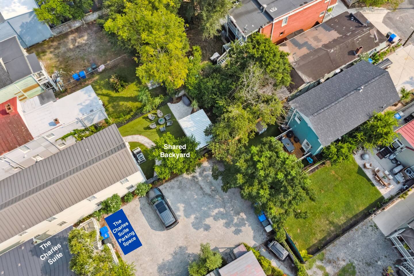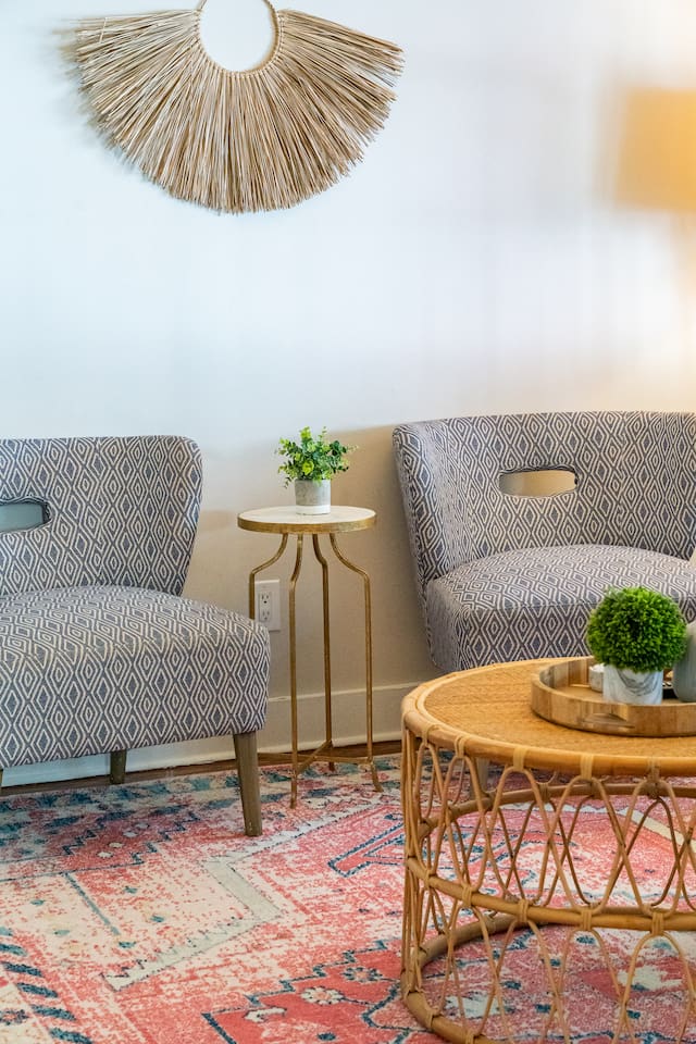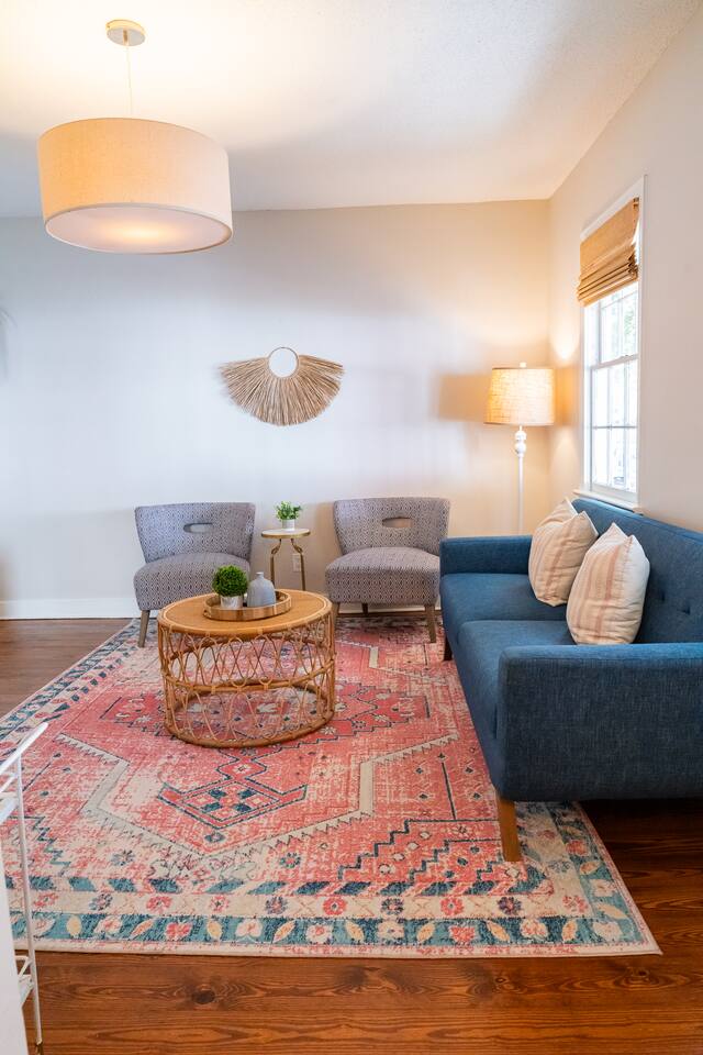 NEED MORE SPACE? We have 6 units across 3 duplexes. The green duplex includes The Emerson Suite (top floor, 3bd/1ba with balcony) and The Charles Suite (first floor, 2bd/1ba). Next door, the white duplex offers The Harper Suite (top floor, 3bd/1ba with a large balcony) and The Victoria Suite (first floor, 3bd/2ba with a spacious porch). Both share a professionally turfed backyard. A half-block away, the grey duplex features The Poppy Suite (top floor, 3bd/1ba with two balconies) and The Isla Suite (first floor, 4bd/2ba with porch), sharing a turfed courtyard. Check individual listings for full amenities. QUIET HOURS As this listing is in a historic duplex, occasional noise from above may be heard. We’ve provided sound machines and request guests observe quiet hours between 10pm and 7am. EVENTS There are no events permitted. Only those included in the reservation may access the property unless prior arrangements are made. NON-SMOKING Our strict no-smoking policy includes a $250 violation fee to maintain a smoke-free environment. PARKING You’ll have one parking space in our private lot. Contact us if additional parking is needed. We also have a Tesla charger available with prior reservation. DOGS WELCOME Dogs are welcome with a $80 fee per dog (max 2). Please keep them off furniture and out of the backyard to preserve the turf. Guests are responsible for any damages. CITY NOISES This is a first-floor unit in a historic duplex, so you may occasionally hear sounds from the neighboring unit or typical city noises. Due to the property's downtown location, you may encounter intermittent urban sounds, including traffic, construction, nearby neighbors, street activity, and emergency vehicles. INCLEMENT WEATHER Refunds will only be issued for mandatory evacuations. Travel insurance is always recommended.