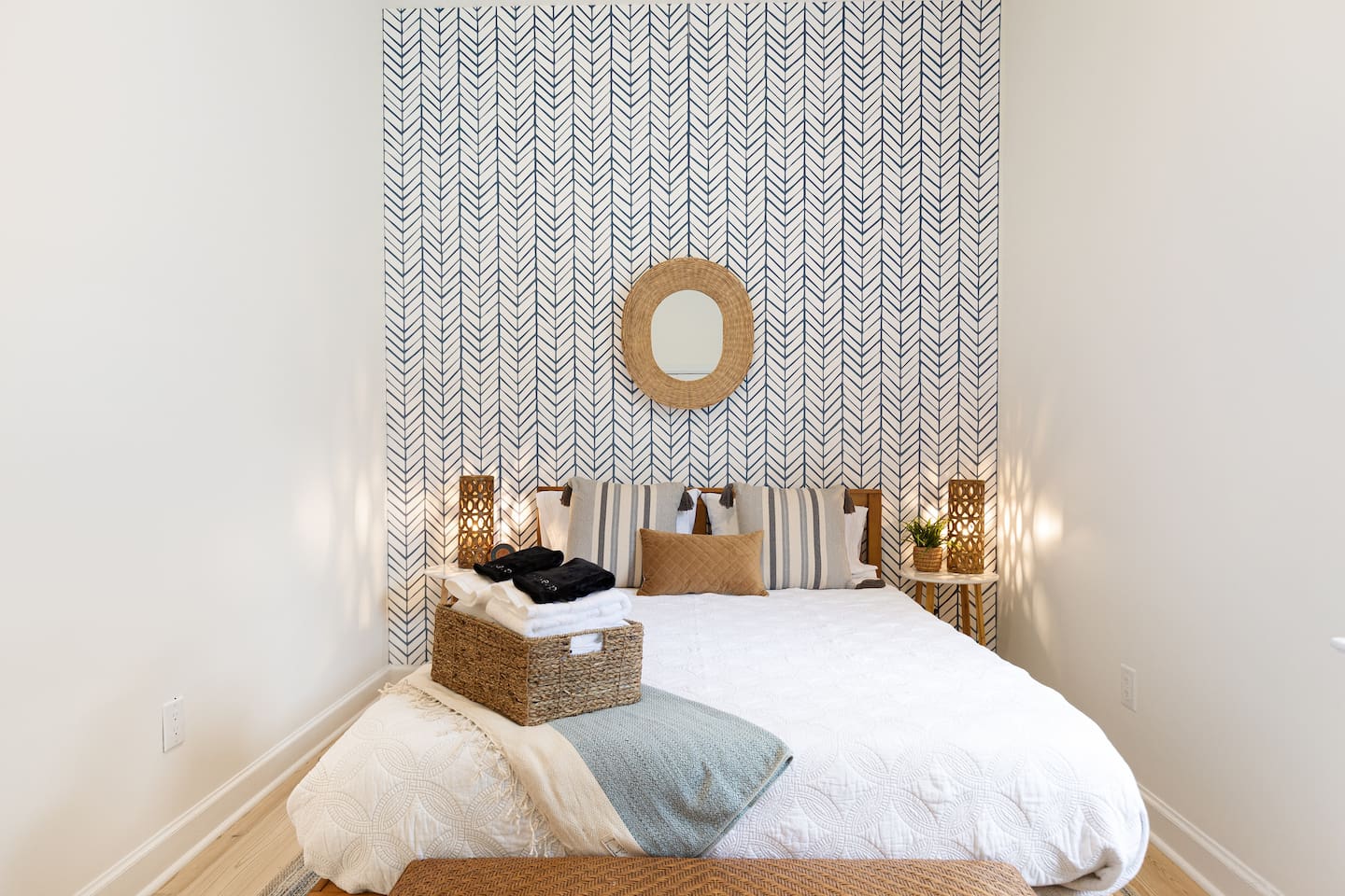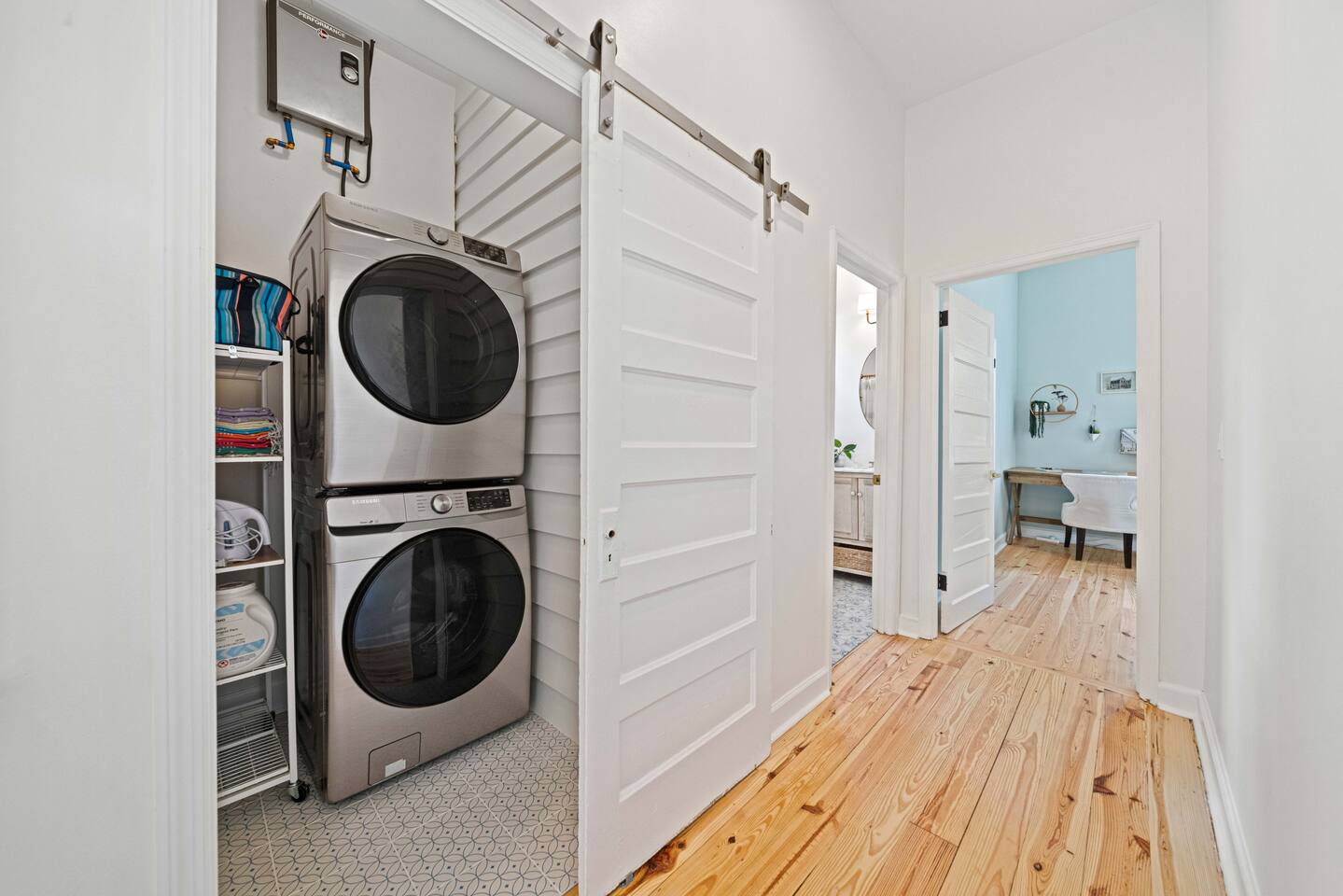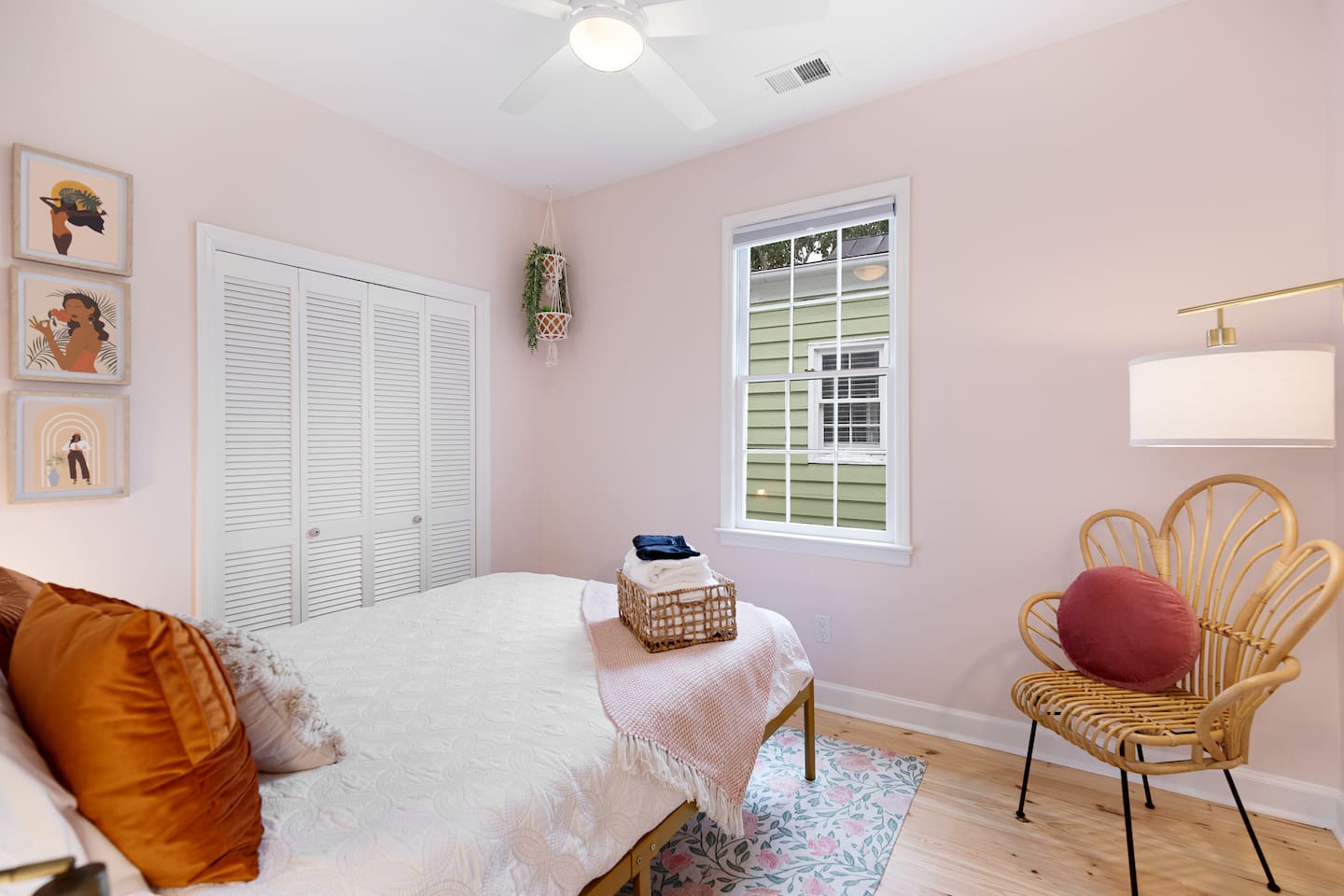 Welcome to The Harper Suite, a newly renovated top-floor retreat in Charleston, blending style and comfort for a memorable coastal getaway. Perfect for families or groups of up to 6, this bright 1200 sq ft space features an open floor plan, vaulted ceilings, a private balcony, and a shared, professionally turfed backyard. The chef’s kitchen boasts quartz countertops, a spacious island, and new appliances, ideal for meals big or small. Unwind in the cozy living room or on the balcony’s porch swing, enjoying the Charleston breeze. Three comfortable bedrooms include a king-bed primary with a desk and walk-in closet, and two queen-bed rooms with coastal-inspired decor, blackout blinds, and sound machines. The bathroom offers a rain shower, bathtub, dual vanity, fresh towels, toiletries, a hairdryer, and a steamer. Outside, the backyard is perfect for grilling or relaxing with a pergola, bench seating, chair swing, poufs, and a JENGA set. Additional amenities include high-speed Wi-Fi, AC, heating, washer/dryer, and free parking for one vehicle. Families will love the pack + play, highchair, toys, books, beach towels, and accessories. Nestled in a quiet neighborhood, The Harper Suite is a short walk from cocktail bars, restaurants, and boutique shops, with three beaches just 15 minutes away. Whether seeking adventure or relaxation, this suite ensures an unforgettable Charleston stay. Permit: OP2023-04269