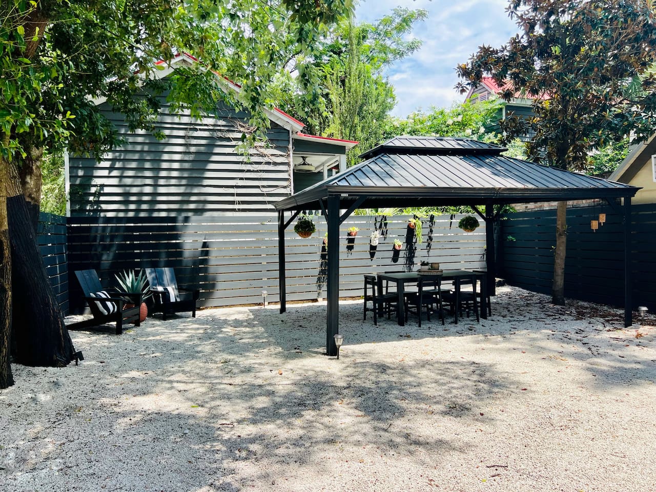 NEED MORE SPACE? We have 5 other units available. The upstairs unit is The Poppy Suite (3BD/1BA). Half a block away are two duplexes. The green duplex includes The Emerson Suite (top floor, 3BD/1BA, balcony) and The Charles Suite (first floor, 2BD/1BA). Next door, the white duplex has The Harper Suite (top floor, 3BD/1BA, large balcony) and The Victoria Suite (first floor, 3BD/2BA, large porch). These two properties share a large, professionally turfed backyard. QUIET HOURS This unit is on the first floor of a restored historic duplex. Although extensively renovated, occasional noise from above is possible. Sound machines are provided for your comfort. Quiet hours are from 10pm to 7am. EVENTS Access is restricted to guests on the reservation unless prior arrangements have been made. NON-SMOKING For the comfort of all guests, smoking anywhere on the property is strictly prohibited. Violations will result in a $250 fee. PARKING While all of our other units come with one included parking space, The Isla Suite does not have complimentary parking, as we converted the parking lot into a backyard space for our guests to relax. We do, however, have a tandem driveway a half block away that we offer our guests. Rental of this driveway is $20/night of your stay and holds two vehicles. If you're interested in this option, please reach out ASAP to check availability. DOGS WELCOME We welcome up to two pre-approved dogs with an $80 fee per dog. Dogs must be well-behaved and are not allowed on beds or uncovered furniture. You assume full responsibility for any damages. CITY NOISES Please note that due to the property's downtown location, you may occasionally hear typical city sounds, including traffic, construction, nearby neighbors, street activity, and emergency vehicles. INCLEMENT WEATHER Refunds are only issued for mandatory evacuations ordered by authorities. No refunds for weather-related travel delays from other states. We suggest purchasing travel insurance, especially during storm season. If power or internet issues arise due to storms, we will resolve them as quickly as possible but cannot offer refunds for such inconveniences.