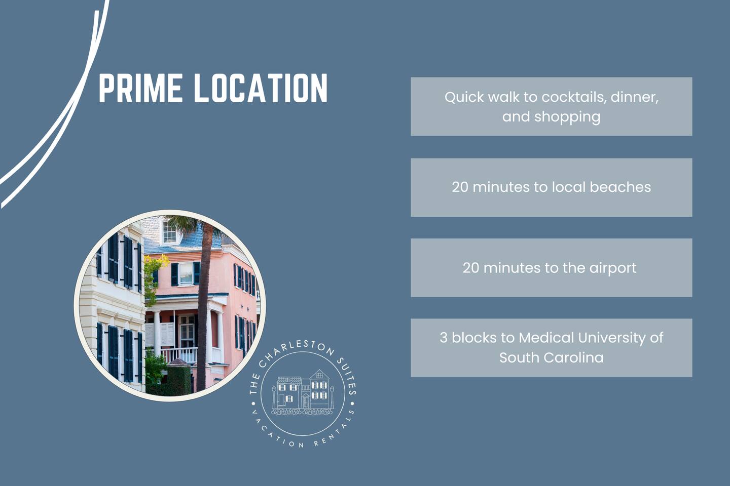 The Isla Suite Prime Location! Quick walk to cocktails, dinner, and shopping 20 min to local beaches 20 min to airport 3 blocks to Medical University of South Carolina 8 blocks to to CoC Campus Professionally turfed courtyard w/grill + backyard w/dining Private parking Dog friendly Paid Parking Available By Request Message us for potential special weekday rates