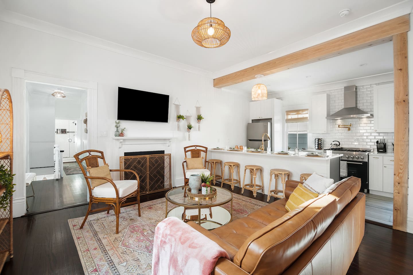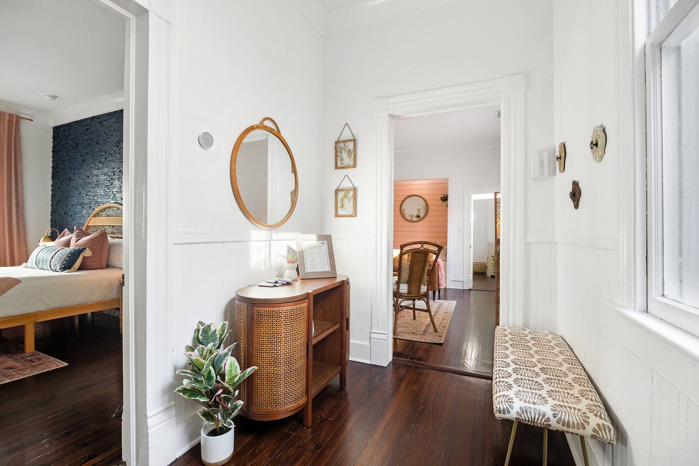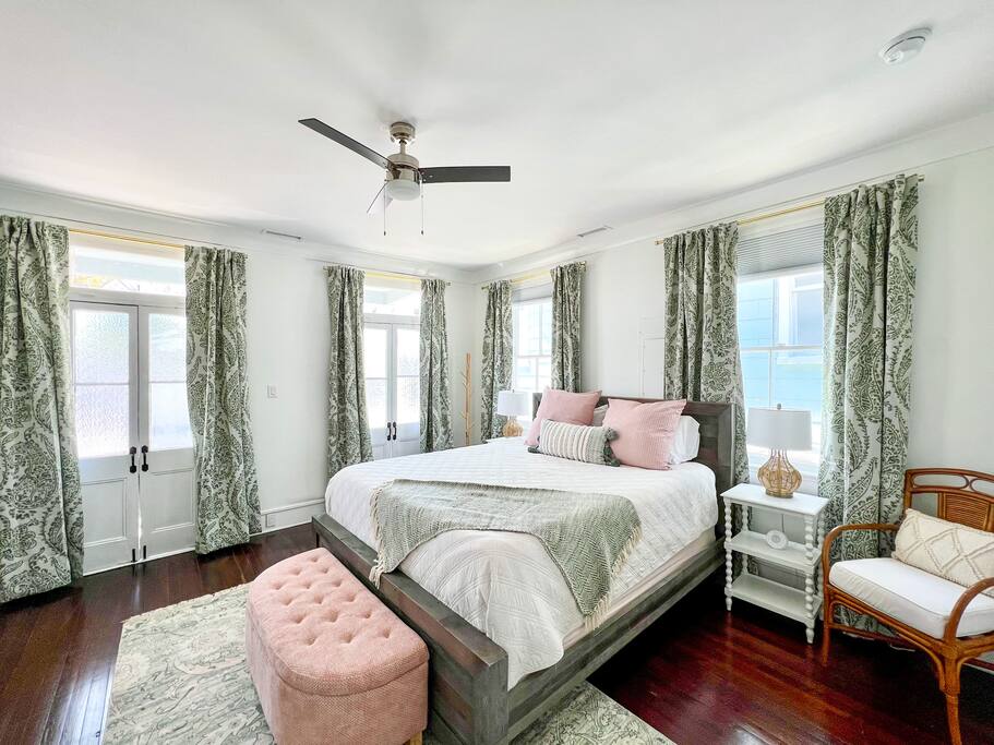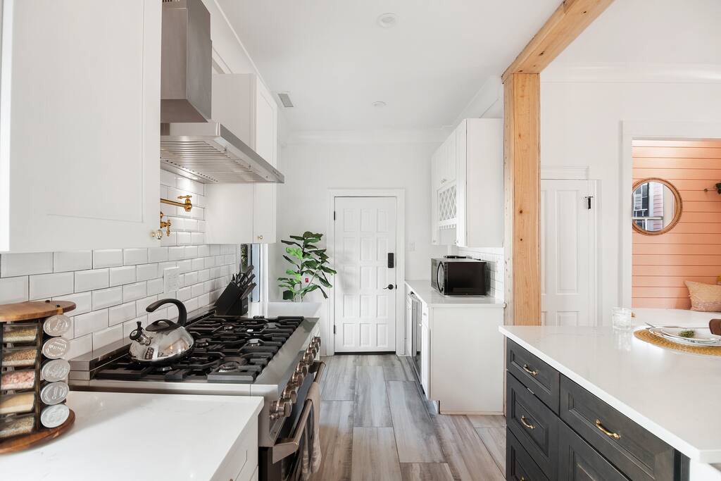Here’s a more relaxed and inviting version of the description for **The Poppy Suite**: --- Welcome to The Poppy Suite! After a long day of exploring Charleston, it’s always nice to come back to a place that feels like home. That’s exactly what we’ve created with The Poppy Suite—a newly renovated top-floor getaway designed to help you recharge and unwind. With two private balconies, a courtyard featuring a bistro set and lounge chairs, and a spacious shared backyard with extra seating and a pergola, you’ll have plenty of outdoor spaces to enjoy the sunshine and fresh air. Walk up your private indoor staircase, and you’ll be welcomed by an open floor plan that’s both stylish and comfortable. The living room, dining area, and balcony blend together effortlessly, creating a great space for relaxing or gathering with loved ones. The warm shades of pinks and oranges throughout the room bring a little bit of Charleston’s sunset magic indoors. Whether you’re sinking into the sofa with a good book or enjoying snacks and drinks with friends, this is your spot to relax. We’ve even added a cozy bohemian reading nook if you need a little quiet retreat. The fully equipped kitchen is ready for whatever meals you’ve got in mind—from a quick breakfast to a gourmet dinner. Quartz countertops, a large island, a ZLine Chef Range, and a wine fridge make it easy to cook up something special. When it’s time to rest, you’ll find three cozy bedrooms designed with comfort in mind. The primary bedroom has a king-size bed and opens to a large balcony with rocking chairs and an outdoor loveseat, perfect for those peaceful mornings or evenings. The second bedroom has a queen-size bed and a desk for those who might need to catch up on work. The third bedroom, with its charming Serena and Lily wallpaper, features a twin-over-full bunk bed and access to the second balcony. All bedrooms come with blackout curtains and sound machines, so you can enjoy a peaceful night's sleep. The bathroom is a treat, too, with a rain shower and built-in bench. We’ve got you covered with towels, shampoo, conditioner, body soap, and a clothing steamer. Outside, you’ll find two great spots to enjoy the Charleston weather. The professionally turfed courtyard is perfect for a sunny morning coffee or an afternoon barbecue, with Adirondack chairs that invite you to sit back and relax. In the shared backyard, there’s a pergola, more seating, and a full dining table for six—ideal for outdoor meals or unwinding in the shade. At The Poppy Suite, we want you to feel at home while you experience the charm of Charleston. Book your stay today and get ready to relax, explore, and enjoy all the comfort and style we have to offer. City of Charleston Certificate of Operation: OP2024-05118