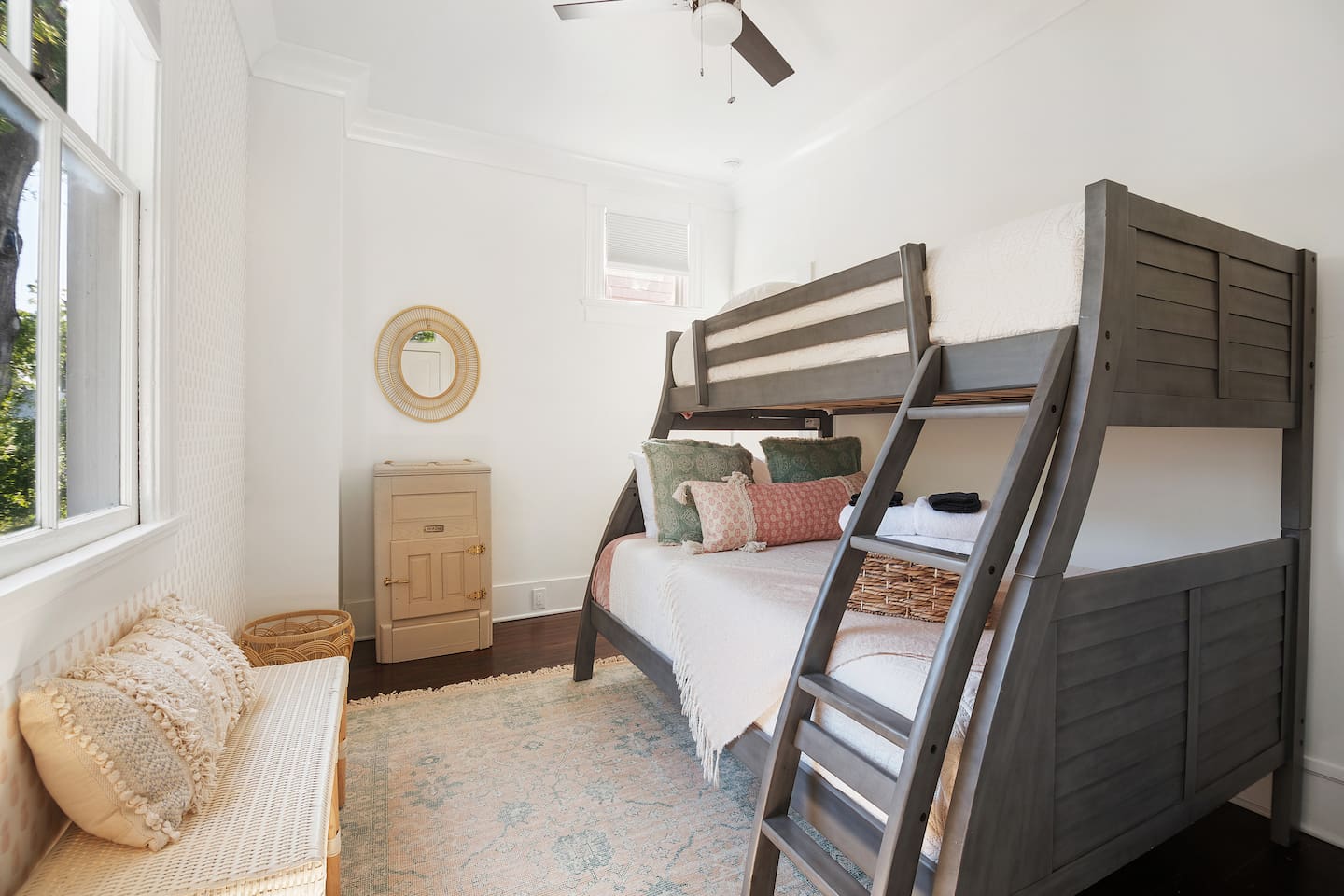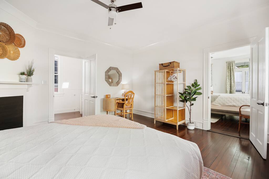 NEED MORE SPACE? We have 6 units across 3 duplexes. The green duplex includes The Emerson Suite (top floor, 3BD/1BA with balcony) and The Charles Suite (first floor, 2BD/1BA). Next door, the white duplex features The Harper Suite (top floor, 3BD/1BA with large balcony) and The Victoria Suite (first floor, 3BD/2BA with large porch). These duplexes share a large, professionally turfed backyard. Half a block away, the grey duplex has The Poppy Suite (top floor, 3BD/1BA with two balconies) and The Isla Suite (first floor, 4BD/2BA with porch), both sharing a professionally turfed courtyard. For a full list of amenities, please check the individual listings. QUIET HOURS Located on the top floor of a historic duplex, this unit may experience occasional noise from below. To ensure a restful stay, sound machines are provided in each bedroom. Please observe our community's quiet hours from 10pm to 7am. EVENTS The property is accessible only to those on the reservation unless prior arrangements are made. NON-SMOKING Our property has a strict no-smoking policy. A $250 fee will be charged for violations. PARKING One parking space is included. Contact us if you need additional parking. We also have a Tesla charger available upon reservation.