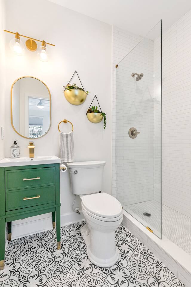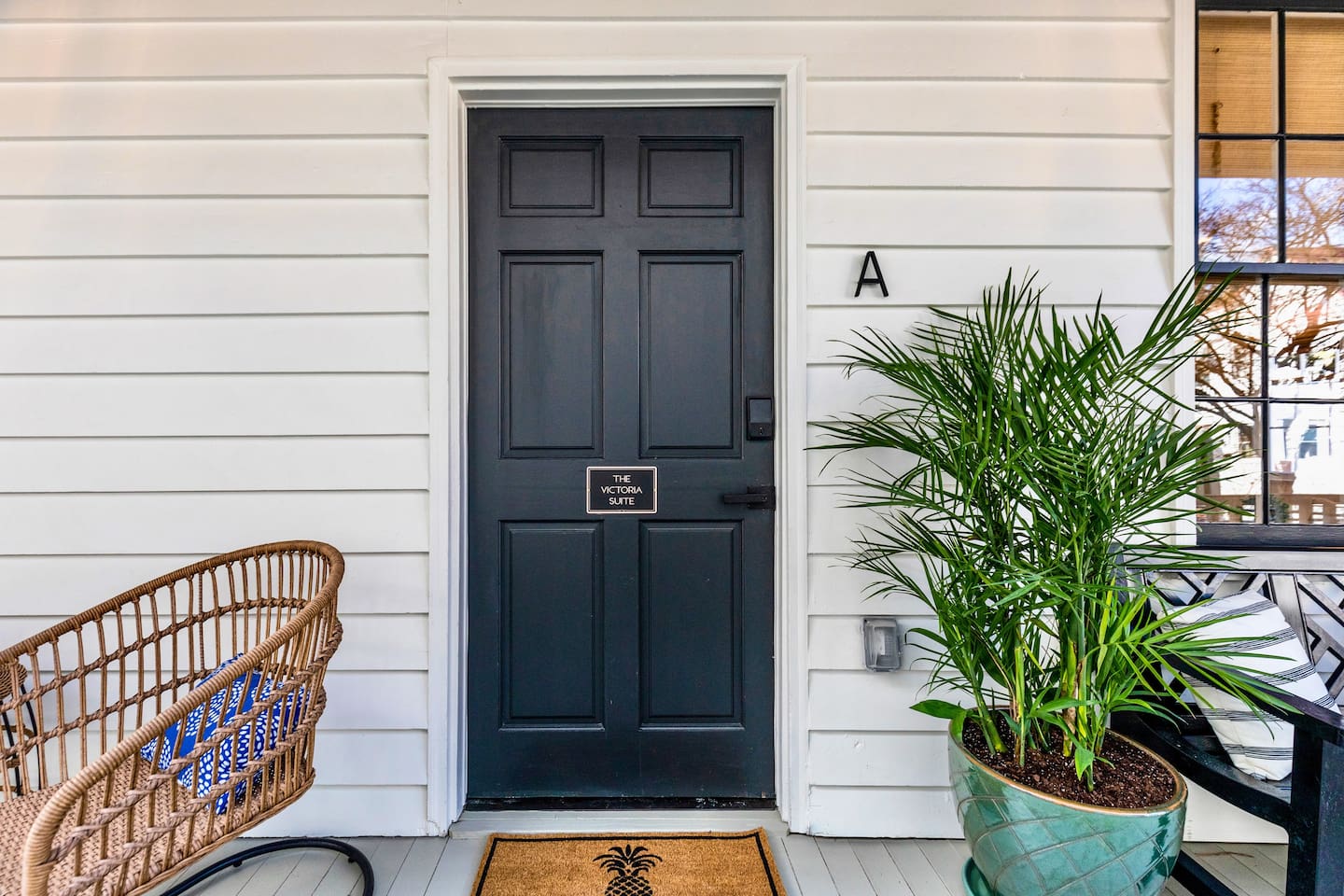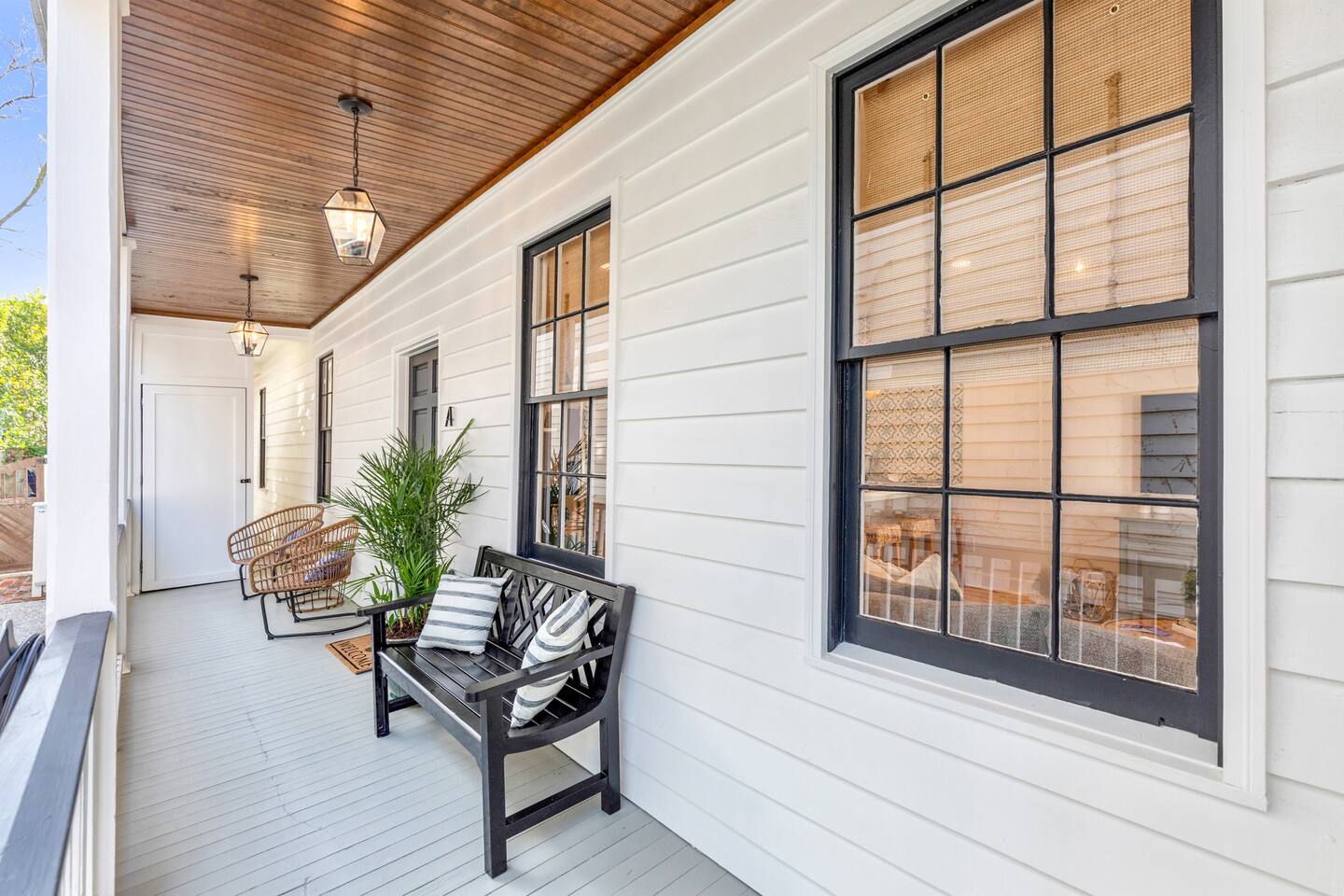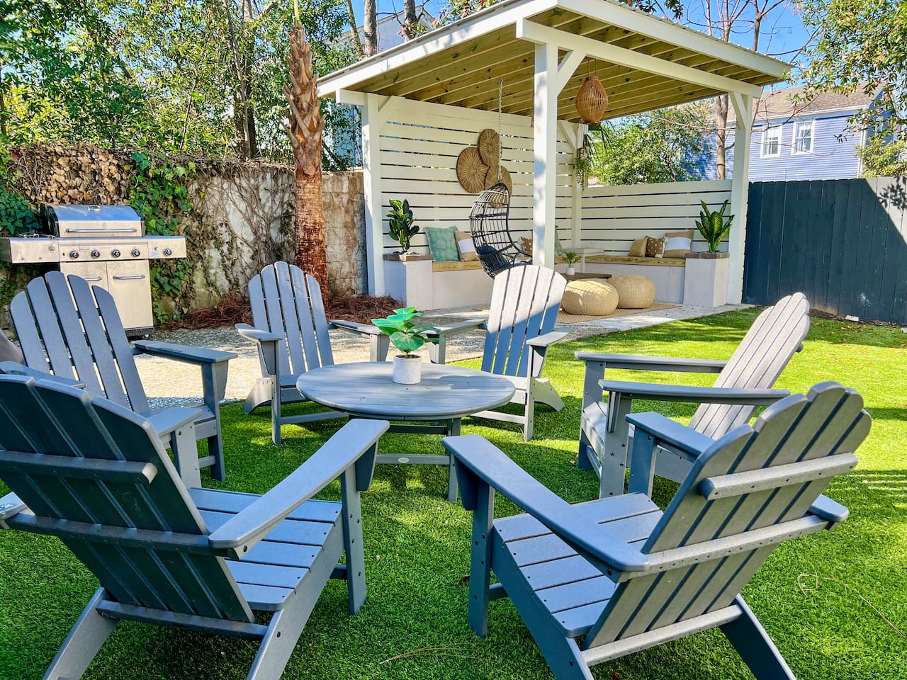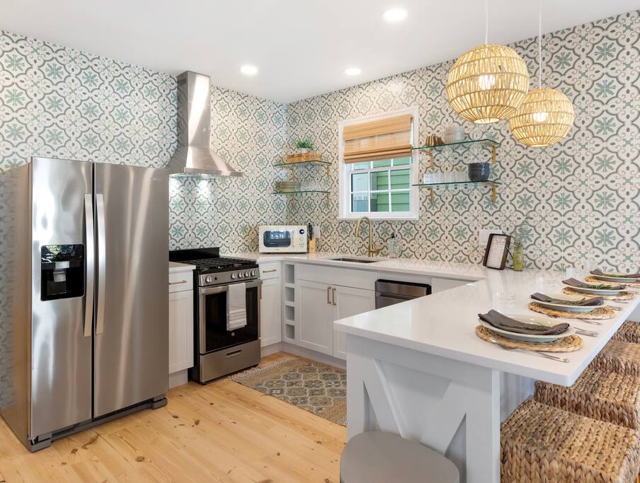 Welcome to The Victoria Suite, where Southern charm and hospitality meet comfort. As you approach the building, you’ll be drawn in by its grand white exterior and classic dual balconies, a nod to Charleston’s signature architecture. Step through the front door, featuring a charming coastal crab knocker, and onto your private first-floor piazza. The deep mahogany wood-paneled ceilings and hanging lantern lights create a peaceful and welcoming atmosphere. Inside your private first-floor unit, you'll be greeted by warm natural light, a vibrant green ceramic backsplash in the kitchen, a spacious living room, and stunning heart pine floors throughout. The kitchen is fully equipped with stainless-steel appliances, quartz countertops, and all the essentials for cooking at home. A small coffee bar, complete with a 12-cup coffee pot, coffee, and flavored syrup, will help start your mornings right. Relax in the living room on the cozy Crate and Barrel sofa, or kick back in the sleek side chairs while catching up on your favorite shows with the smart TV. The cool gray and green tones create a soothing atmosphere, while woven window treatments balance privacy and sunlight. The Victoria Suite features three thoughtfully designed bedrooms, each equipped with blackout blinds and sound machines for a restful night’s sleep. The first bedroom has a king-size bed with whimsical green Serena and Lily wallpaper, along with a full armoire and nightstands with reading lamps. The second bedroom offers a queen-size bed, tropical pink pineapple wallpaper, a desk, and ample clothing storage with a closet and dresser. The third bedroom also has a queen-size bed, complemented by tropical wallpaper, a comfortable reading chair, and plenty of clothing storage. There are two bathrooms, both beautifully appointed. The first includes a rain shower, dual vanity, and a bidet-equipped toilet, while the ensuite bathroom off the primary bedroom features a convenient stand-up shower. Plush towels, hairdryer, clothing iron, and essential toiletries are provided for your convenience. Outside, the shared backyard is a peaceful retreat. It features a pergola with bench seating, a chair swing, and poufs, perfect for gathering with friends or relaxing after a day of exploring. Fire up the grill for a barbecue, or lounge in one of the Adirondack chairs. There’s also a large JENGA set to keep the fun going. Additional amenities include high-speed Wi-Fi, air conditioning, heating, children’s toys and books, and free parking for one vehicle. Families will also find a pack + play, highchair, and beach accessories for added convenience. The Victoria Suite strikes the perfect balance between relaxation and access to everything Charleston has to offer. Within walking distance, you’ll find cocktail bars, restaurants, and boutique shops that showcase the city’s vibrant local scene. And when it’s time to hit the beach, three stunning options are just a 15-minute drive away. Whether you’re looking for adventure or some well-deserved rest, The Victoria Suite offers everything you need for a memorable Charleston getaway. City of Charleston Certificate of Operation: OP2023-04269