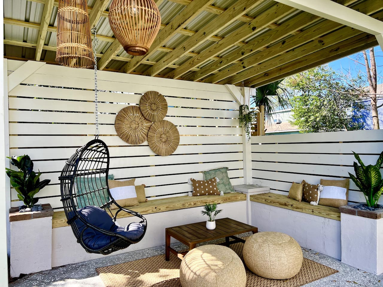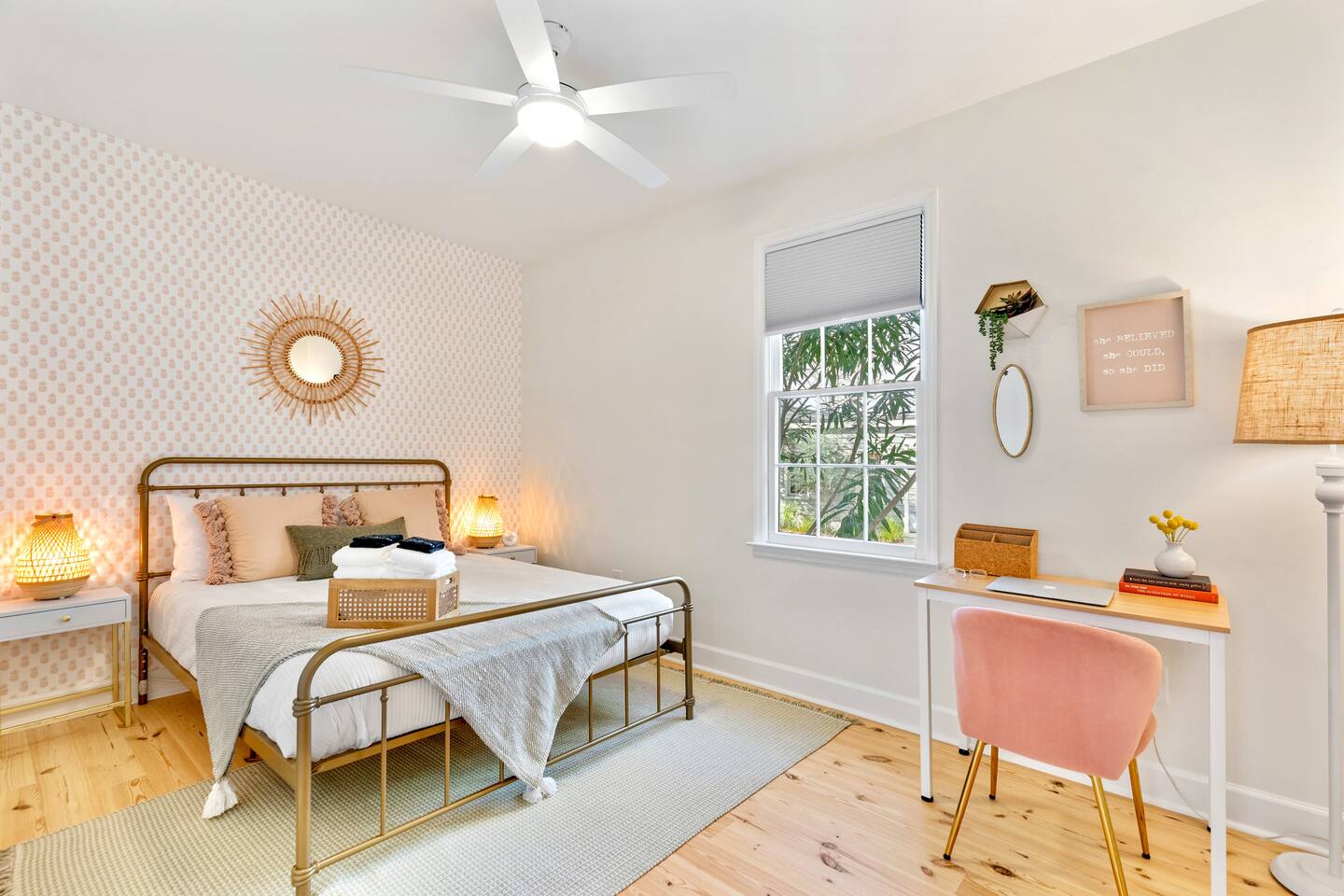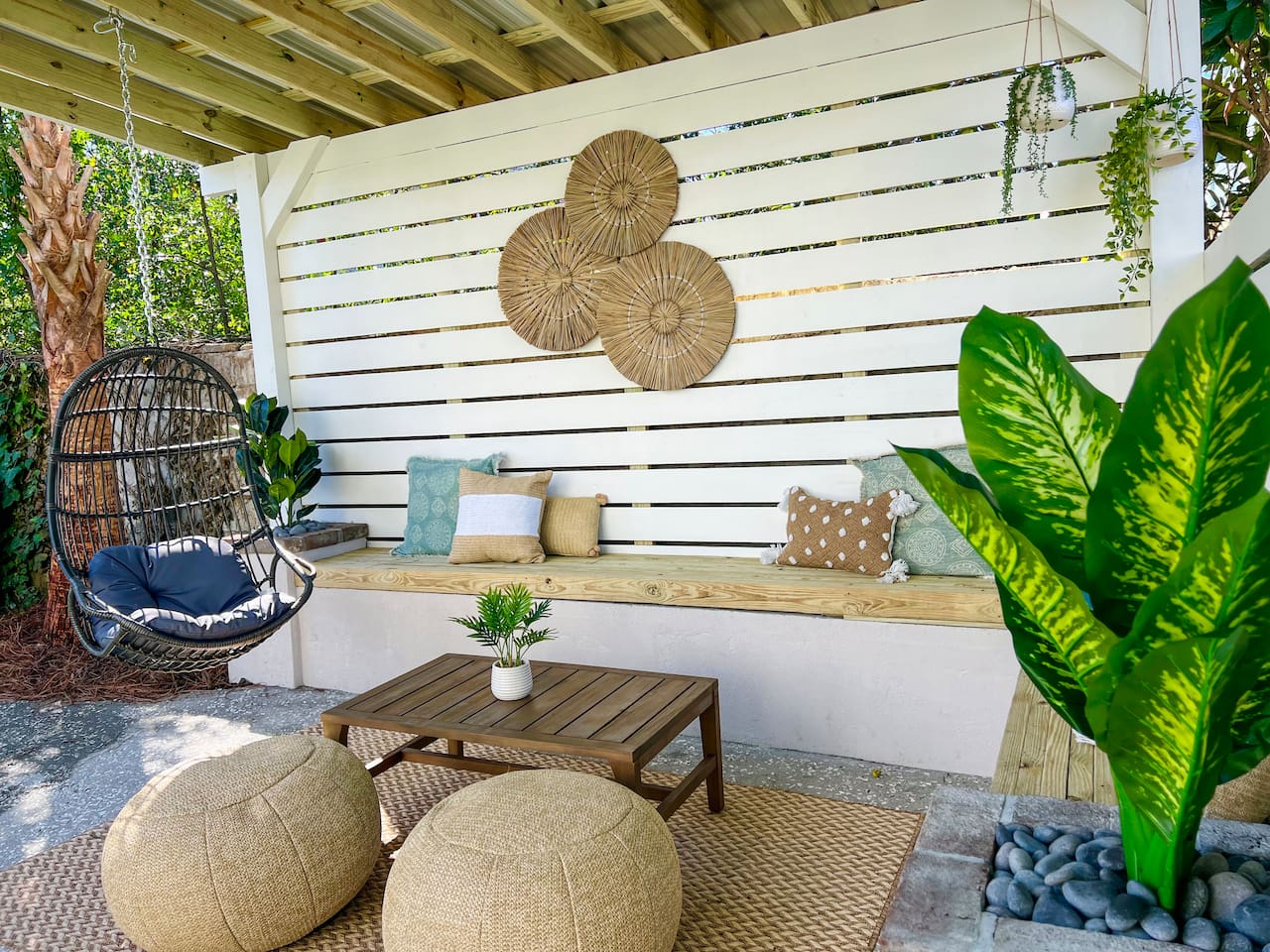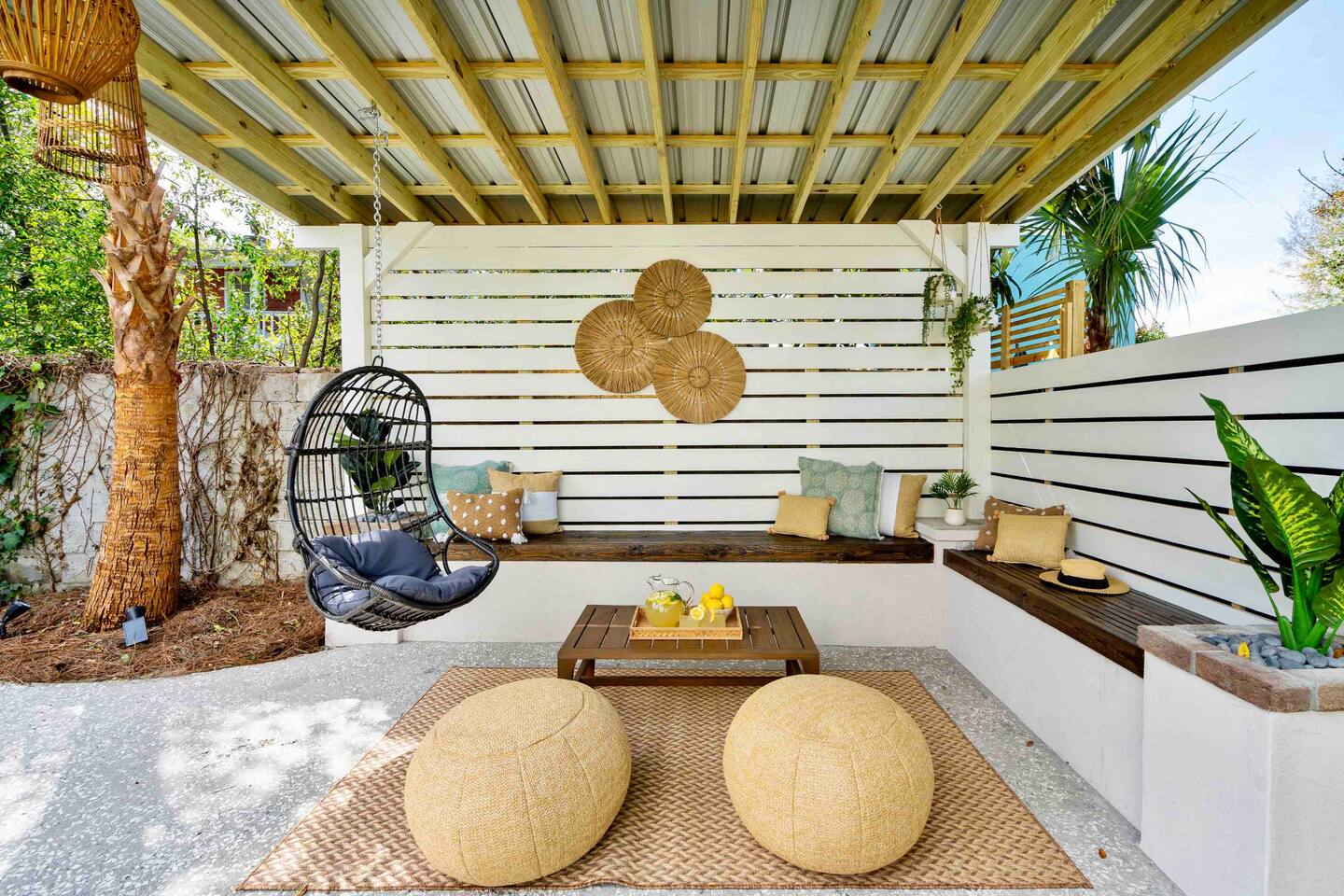 Welcome to The Victoria Suite, where Southern charm and hospitality meet comfort. As you approach the building, you’ll be drawn in by its grand white exterior and classic dual balconies, a nod to Charleston’s signature architecture. Step through the front door, featuring a charming coastal crab knocker, and onto your private first-floor piazza. The deep mahogany wood-paneled ceilings and hanging lantern lights create a peaceful and welcoming atmosphere. Inside your private first-floor unit, you'll be greeted by warm natural light, a vibrant green ceramic backsplash in the kitchen, a spacious living room, and stunning heart pine floors throughout. The kitchen is fully equipped with stainless-steel appliances, quartz countertops, and all the essentials for cooking at home. A small coffee bar, complete with a 12-cup coffee pot, coffee, and flavored syrup, will help start your mornings right. Relax in the living room on the cozy Crate and Barrel sofa, or kick back in the sleek side chairs while catching up on your favorite shows with the smart TV. The cool gray and green tones create a soothing atmosphere, while woven window treatments balance privacy and sunlight. The Victoria Suite features three thoughtfully designed bedrooms, each equipped with blackout blinds and sound machines for a restful night’s sleep. The first bedroom has a king-size bed with whimsical green Serena and Lily wallpaper, along with a full armoire and nightstands with reading lamps. The second bedroom offers a queen-size bed, tropical pink pineapple wallpaper, a desk, and ample clothing storage with a closet and dresser. The third bedroom also has a queen-size bed, complemented by tropical wallpaper, a comfortable reading chair, and plenty of clothing storage. There are two bathrooms, both beautifully appointed. The first includes a rain shower, dual vanity, and a bidet-equipped toilet, while the ensuite bathroom off the primary bedroom features a convenient stand-up shower. Plush towels, hairdryer, clothing iron, and essential toiletries are provided for your convenience. Outside, the shared backyard is a peaceful retreat. It features a pergola with bench seating, a chair swing, and poufs, perfect for gathering with friends or relaxing after a day of exploring. Fire up the grill for a barbecue, or lounge in one of the Adirondack chairs. There’s also a large JENGA set to keep the fun going. Additional amenities include high-speed Wi-Fi, air conditioning, heating, children’s toys and books, and free parking for one vehicle. Families will also find a pack + play, highchair, and beach accessories for added convenience. The Victoria Suite strikes the perfect balance between relaxation and access to everything Charleston has to offer. Within walking distance, you’ll find cocktail bars, restaurants, and boutique shops that showcase the city’s vibrant local scene. And when it’s time to hit the beach, three stunning options are just a 15-minute drive away. Whether you’re looking for adventure or some well-deserved rest, The Victoria Suite offers everything you need for a memorable Charleston getaway. City of Charleston Certificate of Operation: OP2023-04269