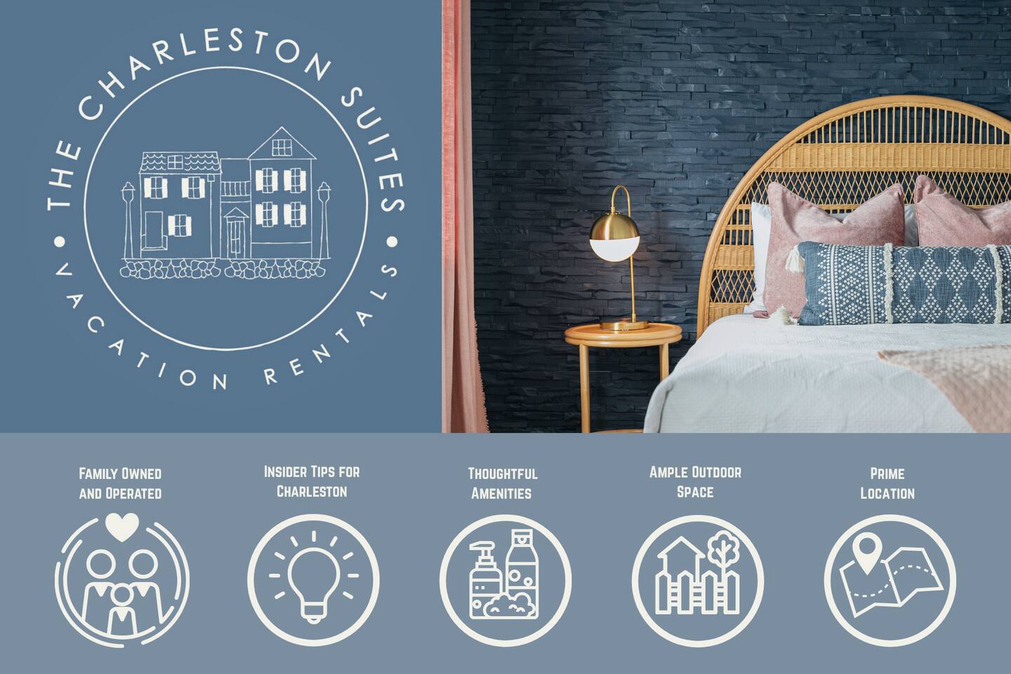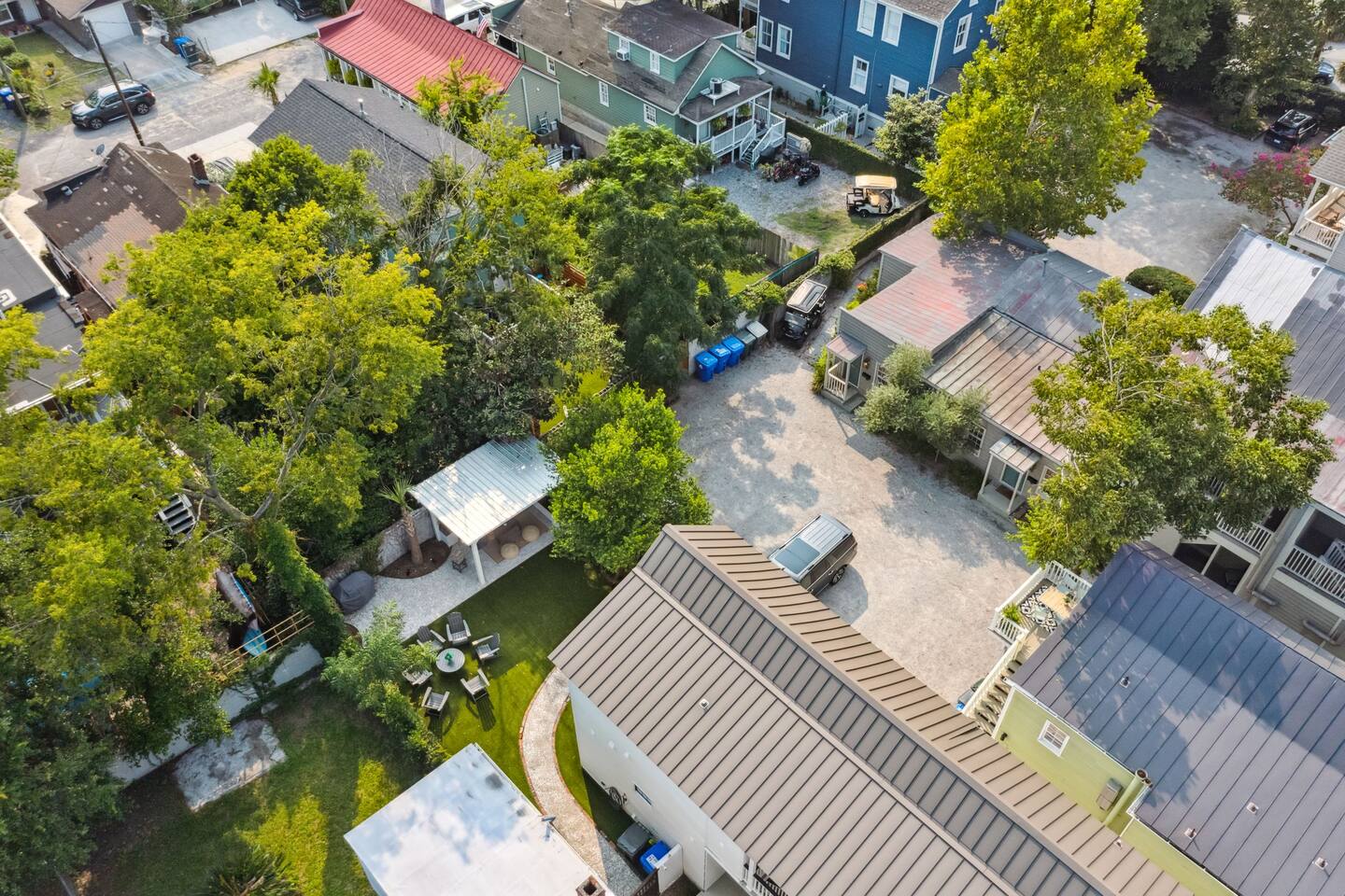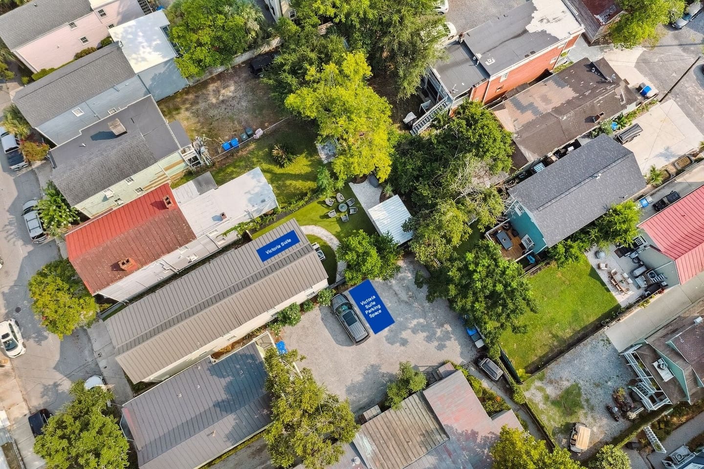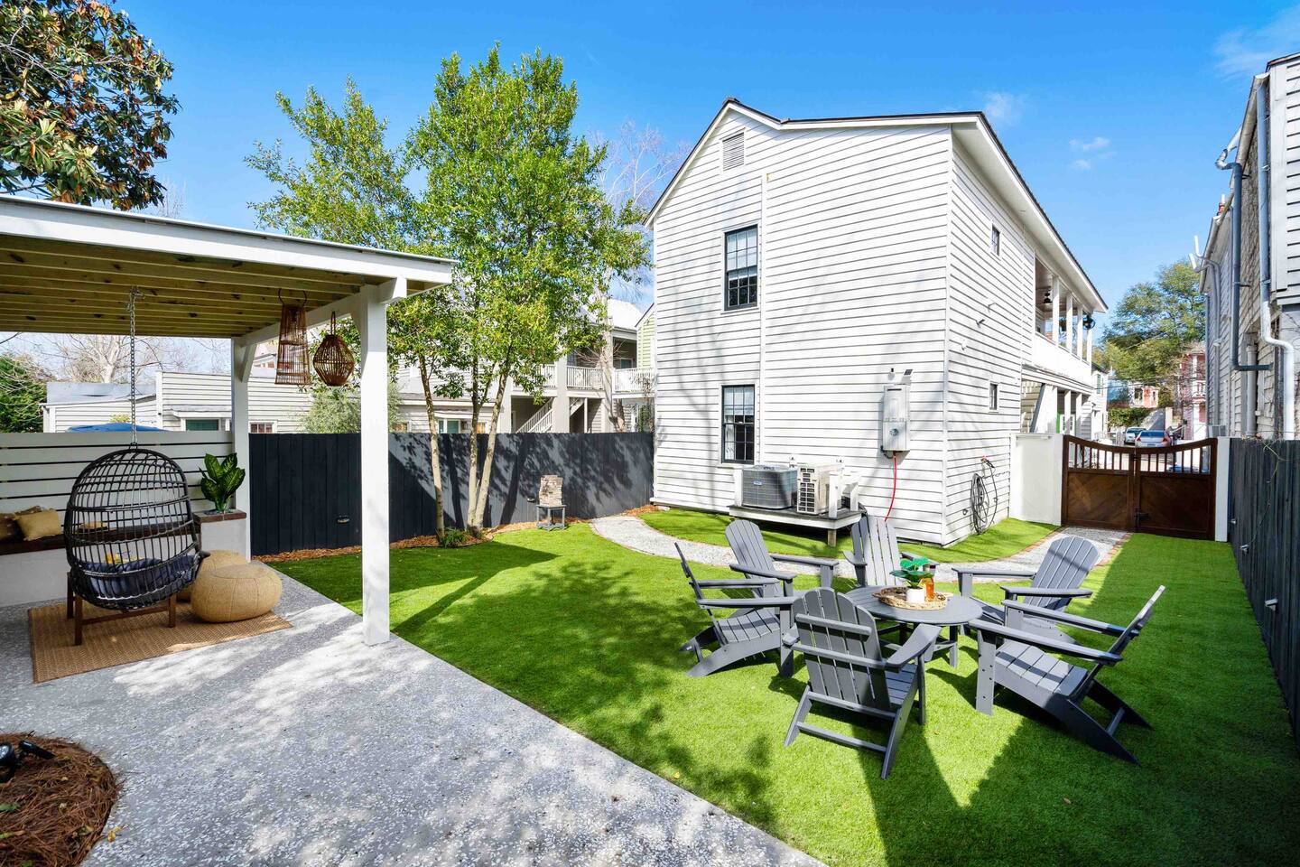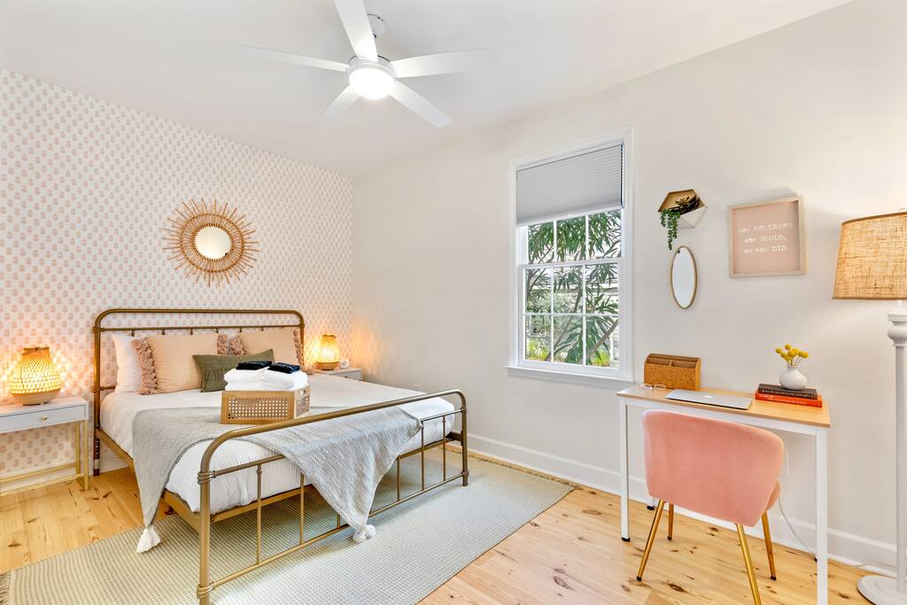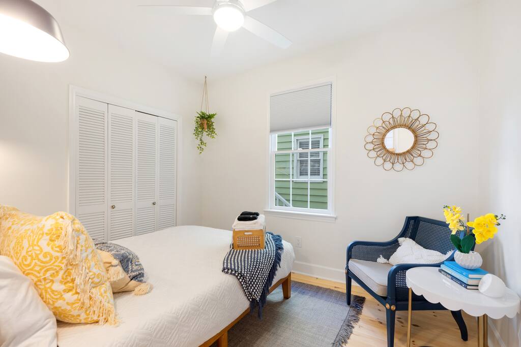 NEED MORE SPACE? We have 6 total units across 3 duplexes. The green duplex offers The Emerson Suite (top floor, 3bd/1ba, balcony) and The Charles Suite (first floor, 2bd/1ba). Next door, the white duplex has The Harper Suite (top floor, 3bd/1ba, large balcony) and The Victoria Suite (first floor, 3bd/2ba, large porch). Both share a professionally turfed backyard. A half-block down, the grey duplex includes The Poppy Suite (top floor, 3bd/1ba, two balconies) and The Isla Suite (first floor, 4bd/2ba, porch), sharing a turfed courtyard. Check individual listings for full amenities. QUIET HOURS This listing is on the first floor of a renovated historic duplex. Though extensively updated, some noise from upstairs may be heard. Sound machines are provided, and we ask that all guests respect quiet hours from 10pm to 7am. LAUNDRY This unit does not have a washer/dryer. If important, please see our other units @TheCharlestonSuites. Our cleaners can provide extra towels/linens for $25. EVENTS Only guests included in the reservation are allowed unless prior arrangements are made. NON-SMOKING A strict no-smoking policy is enforced with a $250 charge for violations. PARKING You will have one parking space in our private lot. Additional options are available, and we have a Tesla charger—please contact us to reserve any of these ahead.=-[;